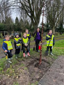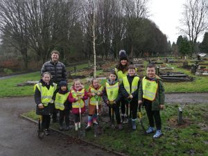 Bereavement Services and Gary Humphries, a member of the ground Staff, who went above and beyond moving heavy trees, digging initial holes, delivering good quality soil and chippings for backfilling and generally helping facilitate the children’s activities.