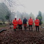 Despite the warning of bad weather we were joined by volunteers from AVOVE in an attempt to clear a large coppice area that was covering a number of graves. You can see the coppice that lies behind the volunteers and the outline of a number of graves hidden within the shrubbery. When the team arrived …
